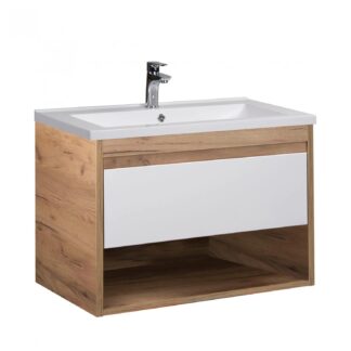 Тумба Мойдодир Oslo 80 Wood з умивальником Cosmo 80 крафт/біла (00-0008335)