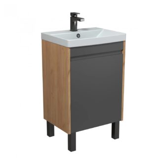 Тумба підвісна/підлогова Мойдодир Olive 50-U з умивальником Sempre 50 графіт з деревом (00-0008273)