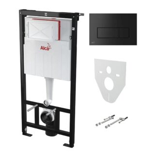 Комплект інсталяції Alcaplast AM101/1120 із чорною матовою прямокутною кнопкою M578 та прокладкою M91 (AM101/1120-4:1 UA M578-0001)