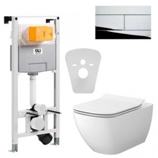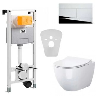 Комплект Cersanit: інсталяція для унітазу OLI 120 Plus + панель змиву Slim хром + унітаз підвісний безободковий B245 Virgo Clean On з сидінням Slim Soft-Close (659044+S701-427)