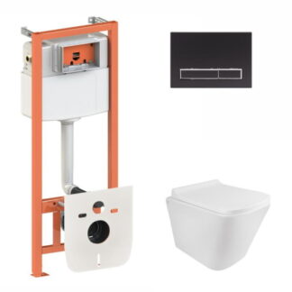 Набір: Qtap Tern + Jay + Swan Ultra Quiet підвісні унітази + Nest інсталяція 4в1 клавіша кругла Black mat (QT1333046EUQW45310)