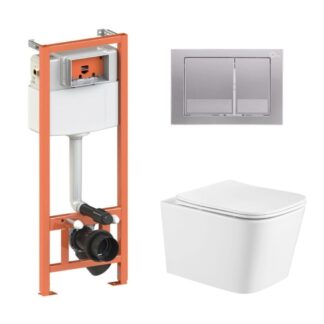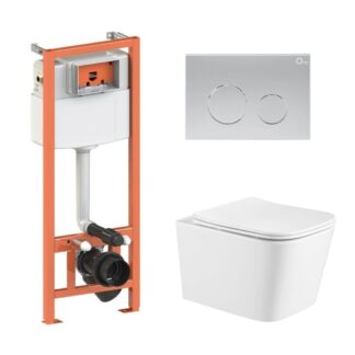 Комплект: Qtap Crow Ultra Quiet унітаз підвісний QT05335171W + Nest інсталяція 4в1 квадратна клавіша Chrome QT0133M425 + M06028CRM (QT05335171W45125)