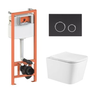 Комплект: Qtap Gemini Ultra Quiet унітаз підвісний QT2533076EUQMB + Nest комплект інсталяції 4в1Клавіша кругла Black mate QT0133M425+QT0111M11V1146MB (QT2533076EUQMB46176)
