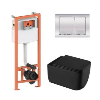 Комплект: Qtap Gemini Ultra Quiet унітаз підвісний QT2533076EUQMB+Nest комплект інсталяції 4в1 Клавіша квадратна Chrome QT0133M425+QT0111M06028CRM (QT2533076EUQMB46173)