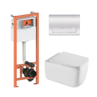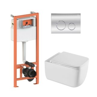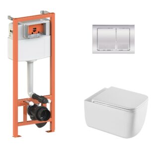Комплект: Qtap Gemini Ultra Quiet унітаз підвісний QT2533076EUQW+Nest комплект інсталяції 4в1 Клавіша квадратна Chrome QT0133M425+QT0111M06028CRM (QT2533076EUQW46161)