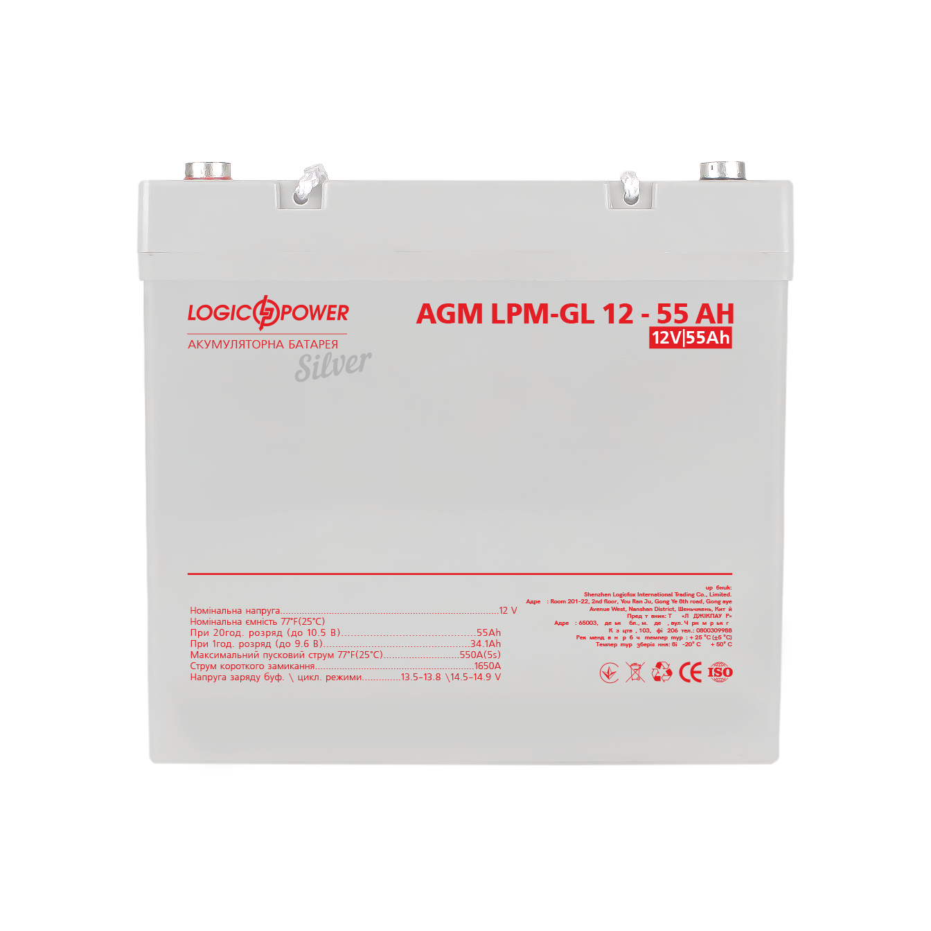 Технічні характеристики акумулятора гелевого LP-GL 12V – 55 Ah Silver