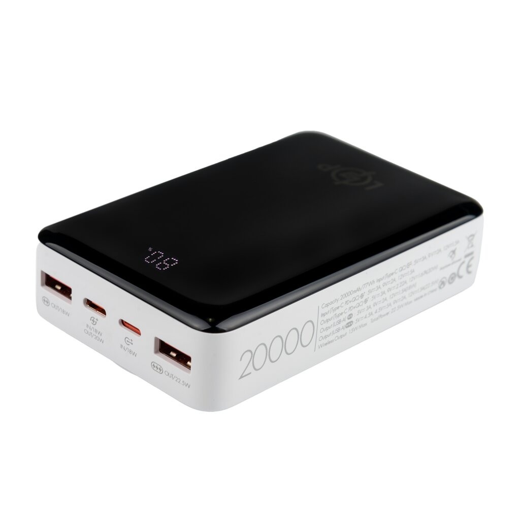 Місткість акумулятора становить 20000 мАг, забезпечуючи потужність, достатню для кількох зарядок.