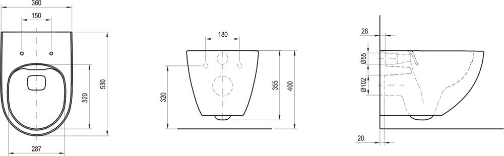 - EasyFix: невидима система кріплення, кріплення унітазу зверху через отвори для сидіння