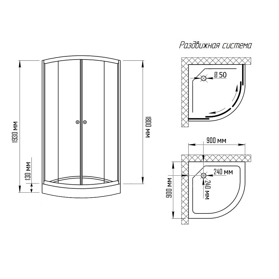 | Душова кабіна 900*900*1900 Опис: і Форма овальна і Піддон: дрібний і Колір профілю: Сатин і Матове скло і Товщина скла: 4 мм і Сифон в комплектації |