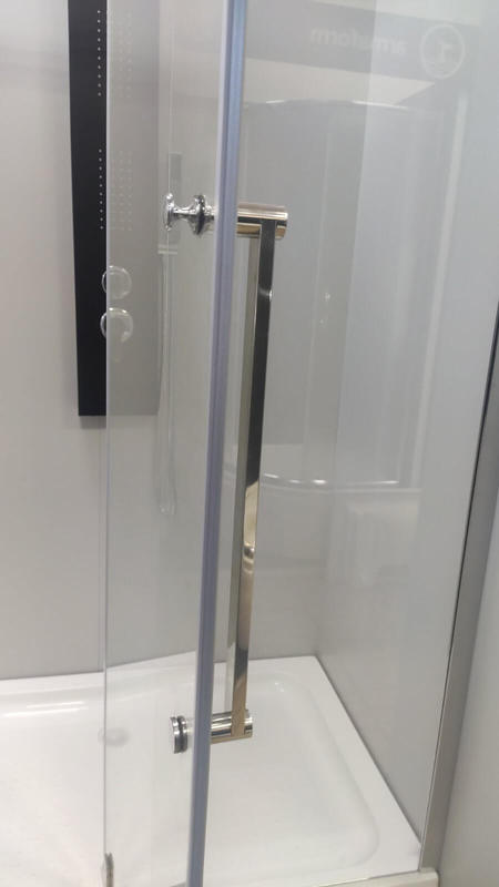 Душова кабіна Veronis KN-8-09 прозоре скло це: 8-міліметрове гартоване скло, алюмінієвий хромований профіль, акриловий піддон з сифоном.