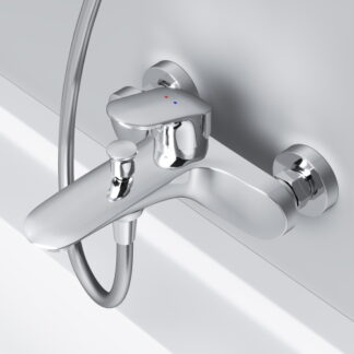 Змішувач для ванни та душу з термостатом: термостатичний картридж із високочутливим термоелементом, стопором безпеки на 38 градусів, швидкою реакцією на зміни температури або тиску надійно захищає від опіку навіть при раптовому відключенні холодної води.