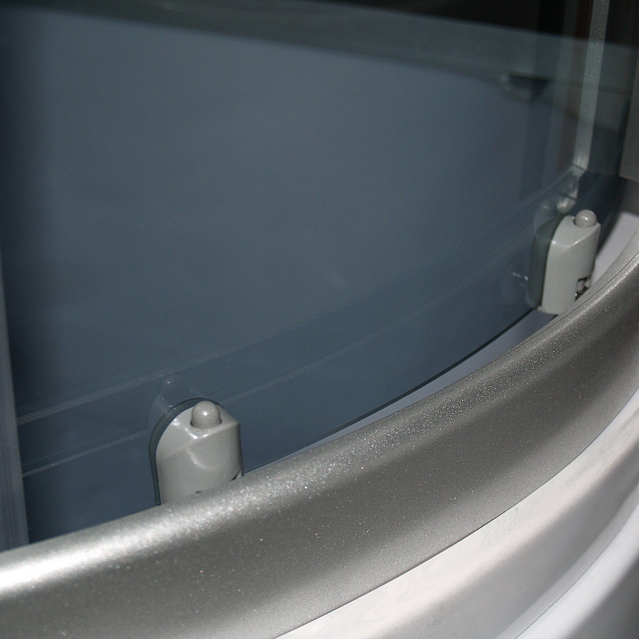 Акриловий піддон та сталевий каркас з регульованими опорними ніжками забезпечують міцність та надійність конструкції. Сифон з гофрою, алюмінієвий каркас – профілі та дуги, строгі передні бічні стекла та двері, задні бічні стекла, силіконові стрічки, ущільнювачі, фіксатори, магнітні стрічки, ролики, ручки для скляних дверей, саморізи та інші аксесуари для збирання її не тільки красивою, а й практичною.