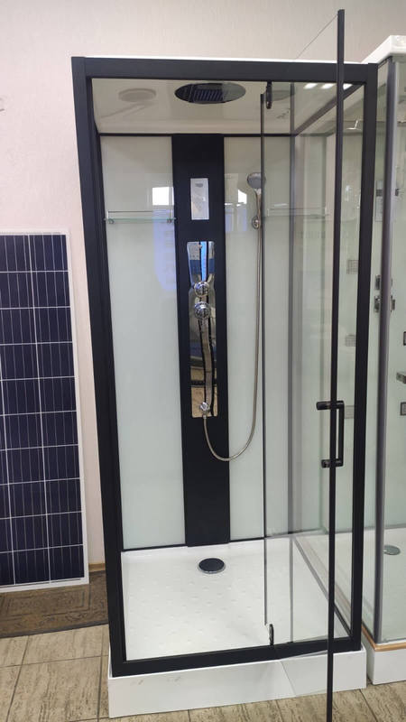 Дверцята душового боксу VERONIS BKN-9-90 виконані з надміцного гартованого прозорого скла товщиною 5 мм. Задні стінки виконані у молочному кольорі. Також бокс оснащений міцним профілем і акриловим піддоном з каркасом, для більшої міцності конструкції.