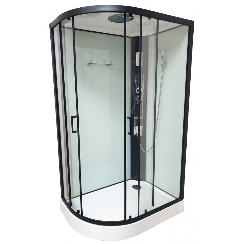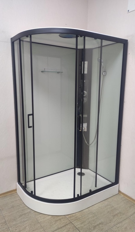 Дверцята душового боксу VERONIS BN-4-120 виконані з надміцного гартованого прозорого скла товщиною 5 мм. Задні стінки виконані у молочному кольорі. Також бокс оснащений міцним профілем і акриловим піддоном з каркасом, для більшої міцності конструкції.