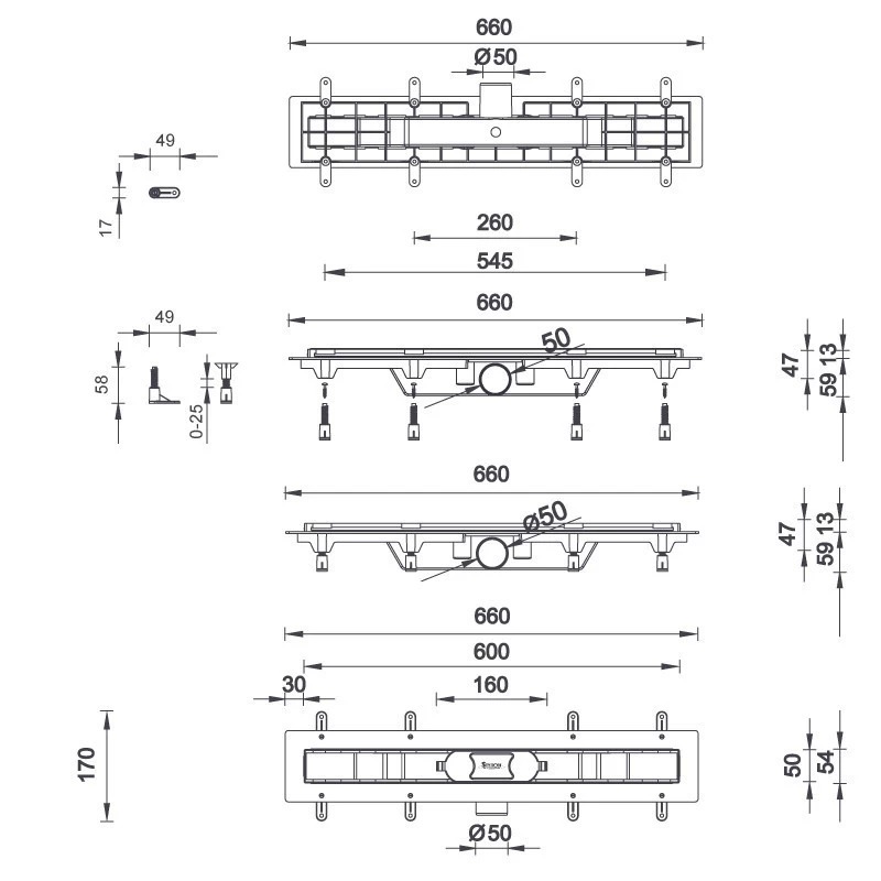 Душові канали виробництва компанії Styron дозволяє зробити ваш душ різноманітної форми та розміру, і може стати зручною та практичною заміною піддону для душової кабіни. Душовий канал розміром 600 мм, які виготовлені з нержавіючої сталі товщиною 1,5 мм. Дизайн душового каналу Styron можна застосувати як у класичному стилі дизайну ванних кімнат, так і в інших стилях і буде однаково відповідним та комфортним у використанні.