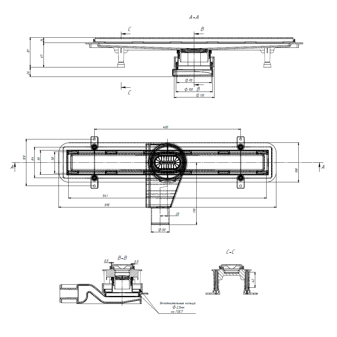 - комплектація: душовий канал – 1 шт, сифон – 1 шт, ірати для волосся 1 шт, ніверсальна двостороння накладка з нержавіючої сталі 1 шт, гідроізоляційні стрічки 4 шт, монтажний набір для кріплення регульованих ніжок: шуруп D 3,5×35мм – 4 шт. дюбель 6х35 мм – 4 шт, регульовані ніжки – 4 шт