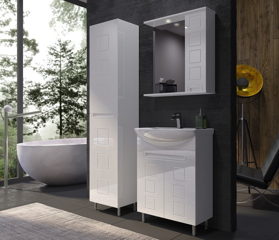 Особливість дизайну колекції SIMFONIYA підкреслюється характерною геометричною точністю, гармонійним поєднанням пластичності та суворості. Декоративні вирізи у вигляді ручок та фрезерування на фасаді ідеально гармонують з глянсовою обробкою меблів. Для комфортної експлуатації меблів використовуються петлі з механізмом плавного та безшумного закривання. Дзеркала виготовлені з вологостійкого дзеркального полотна бельгійської компанії іAGC GLASSEUROPEі. Вони оснащені додатковим підсвічуванням, для включення якого передбачено компактний меблевий вимикач з розеткою. Корпус меблів виготовляється з ламінованого ДСП із підвищеною вологостійкістю. Фасади меблів виготовлені з ЛМДФ. Фасадні та бічні частини меблів покриваються білою глянсовою емаллю. Мінімалізм та геометрія фасадів, чіткість та лаконічність форм колекції SIMFONIYA дозволяють створювати сучасні, стильні та гармонійні інтер’єри у вашій ванній кімнаті.
