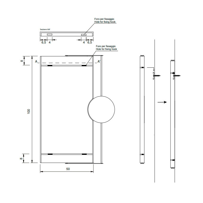 - прямокутне дзеркало у сталевій рамі