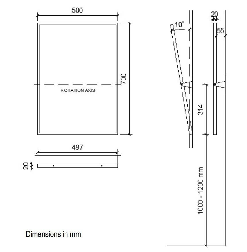 - дзеркало з регульованим кутом нахилу спеціально розроблене для встановлення в санвузлах для людей з обмеженими можливостями