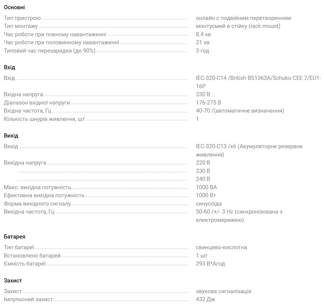 Забезпечення обладнання, що захищається, чистим синусоїдальним безперебійним живленням при заміні акумуляторних батарей.
