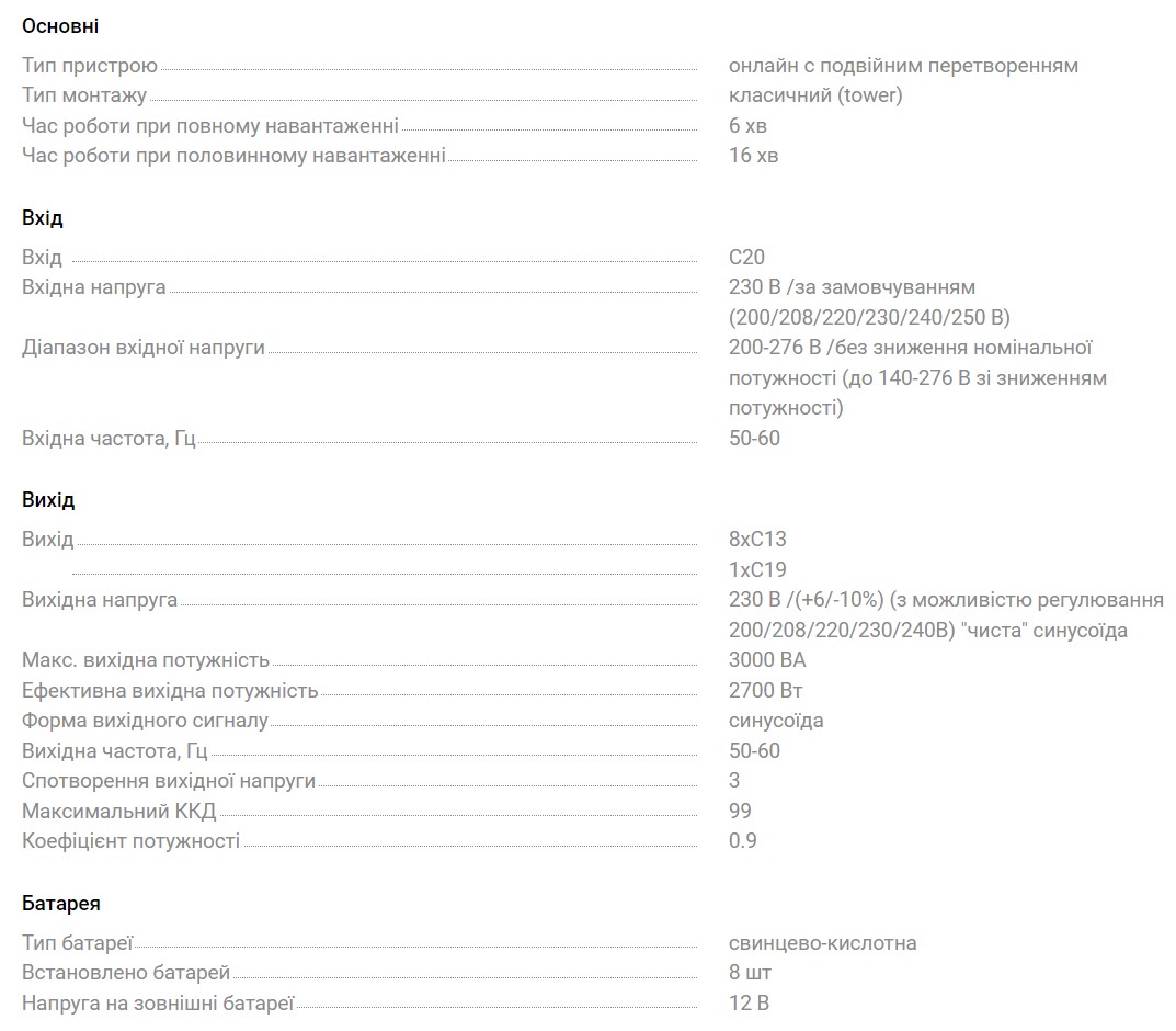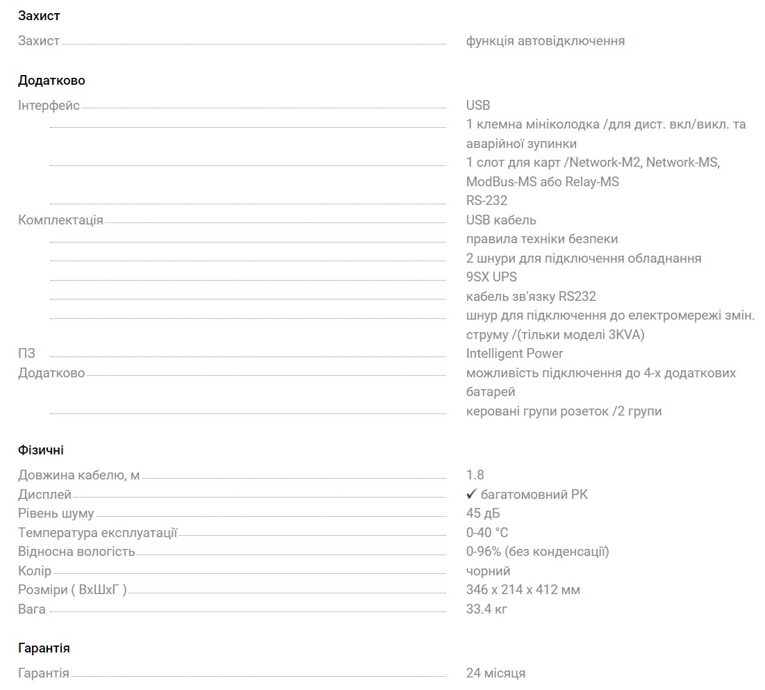 - Повна інформація про статус ДБЖ та можливість налаштування параметрів конфігурації 8 мовами;