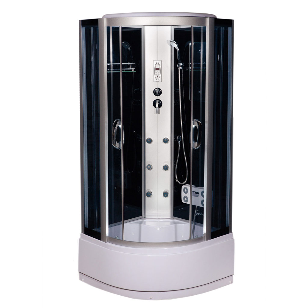 Гідромасажний бокс із глибоким піддоном. Загартоване скло дверей завтовшки 5 мм. Кабінка оснащена комплексним освітленням, дозатором для мила, масажером для ніг, вбудованою панеллю керування. Конструкція передбачає підключення витяжки.