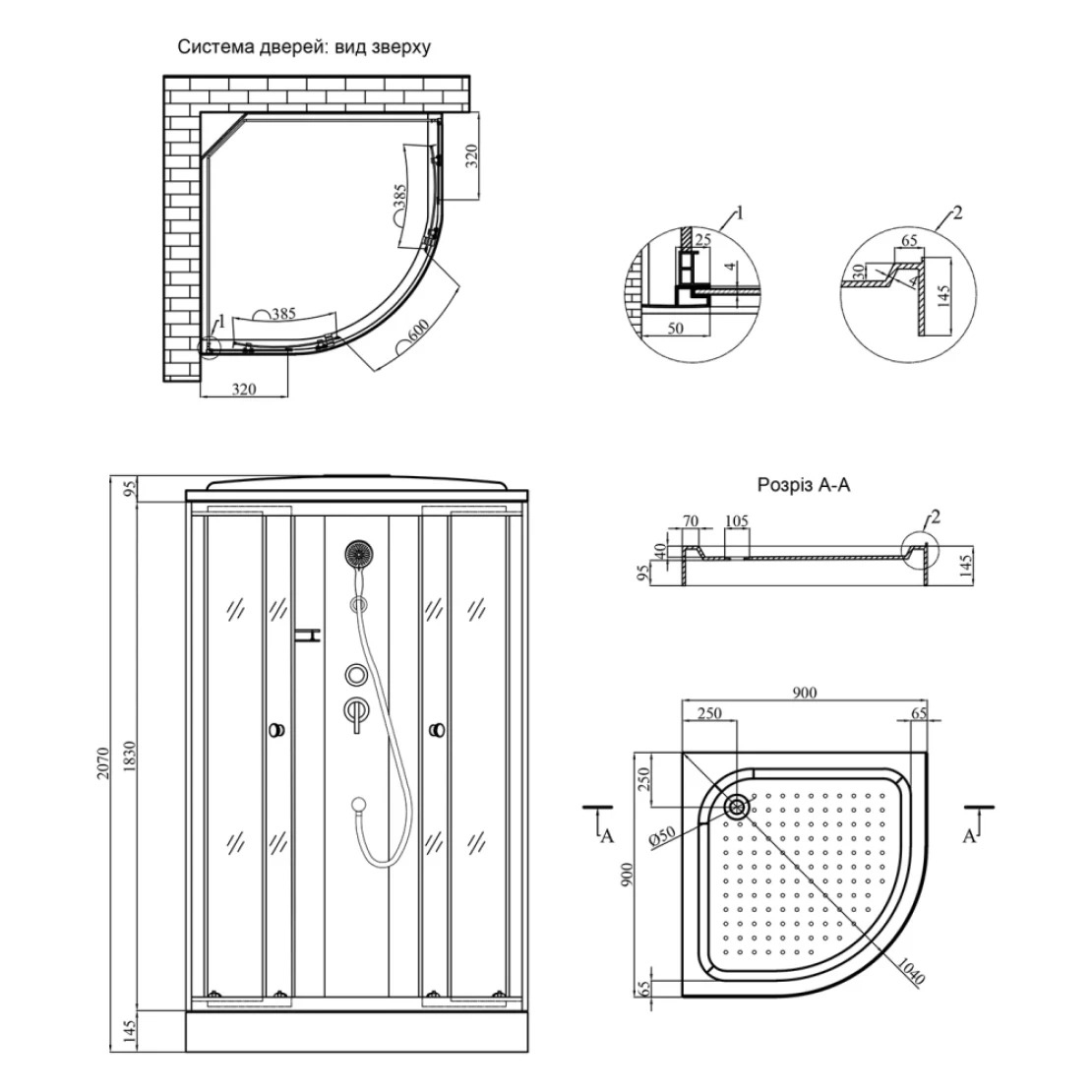 - Розмір піддону (ВхШхД): 145х900х900 мм