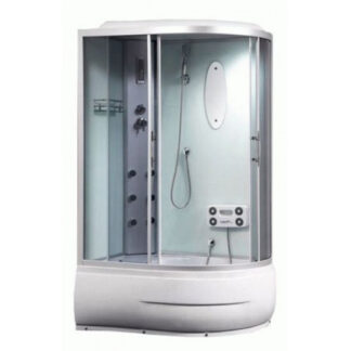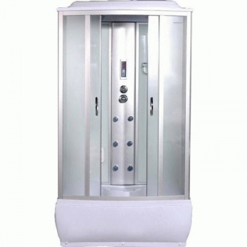 Гідромасажний бокс AquaStream Classic 125 HW, форма – прямокутна, розмір – 120х85 см, висота кабіни – 217 см, переднє скло – матове, задні стінки – скло біле, комплектація – електронна панель управління, переднє/бокове скло, заднє скло, профіль алюмінієвий, акриловий піддон, радіо, витяжний вентилятор, динамік, гідромасаж 6 форсунок, масаж ніг, верхній душ, ручний душ, гідромасажна панель, ручки хром, ролики сталеві, дзеркало, поличка, багатофункціональний змішувач, сифон старт/стоп, країна виробник – Китай.