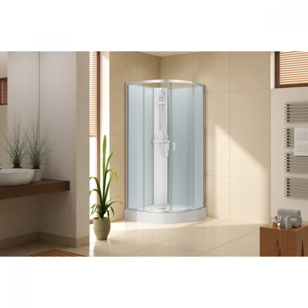 - Центральна панель боксу укомплектована змішувачем-термостатом та душовою стійкою з 3-х функціональною хромованою лійкою.