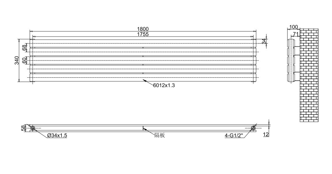 • Розмір: висота і 340 мм, ширина і 1800 мм