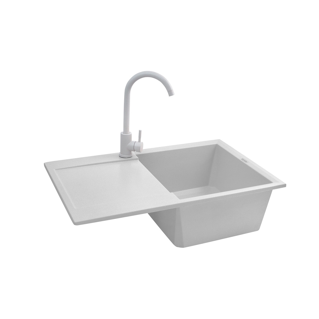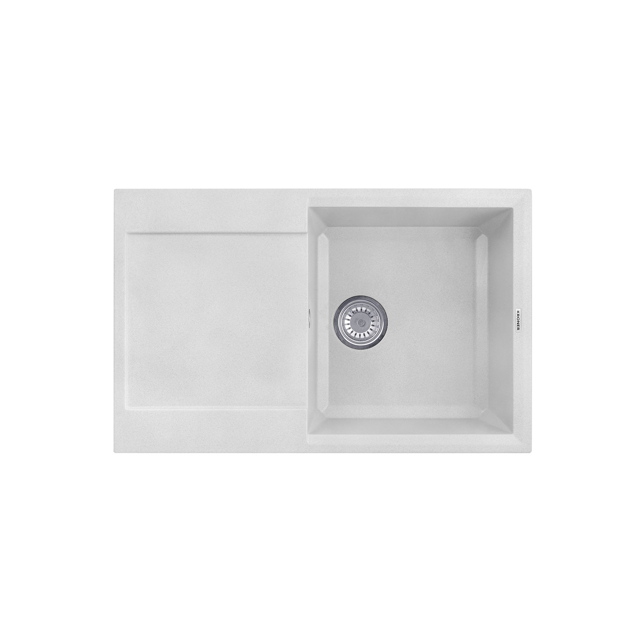 Кухонна мийка Kroner має містку чашу та крило зі спеціальними заглибленнями для сушіння посуду. Крило можна розмістити як праворуч, так і ліворуч, мийка обертається. Глибока чаша мийки дозволяє з легкістю мити габаритний посуд або набирати воду у вази для квітів. Мийка встановлюється врізним способом на стільницю і фіксується за допомогою кріплень, що входять до комплекту постачання. На борту мийки є один отвір для змішувача. Також мийка укомплектована сифоном з переливом та кошиковим зливом.