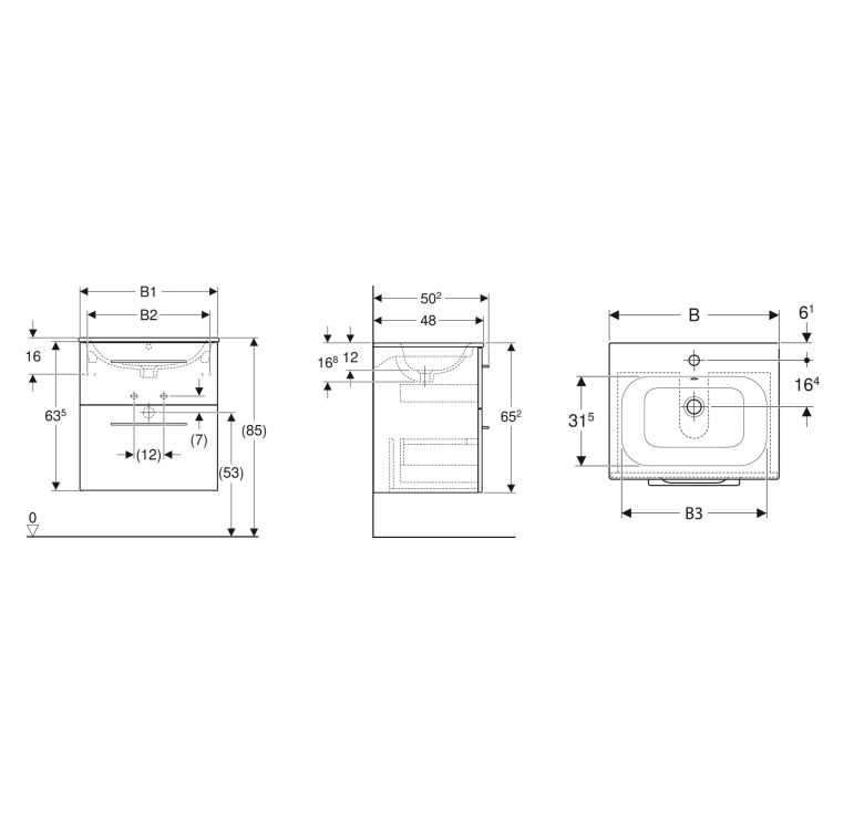 Комплект вбудованого умивальника Geberit Selnova Square slim rim, з шафкою, два ящики: B1 = 78.8см, лава (501.241.00.1) – зручні сантехнічні меблі на кожен день.