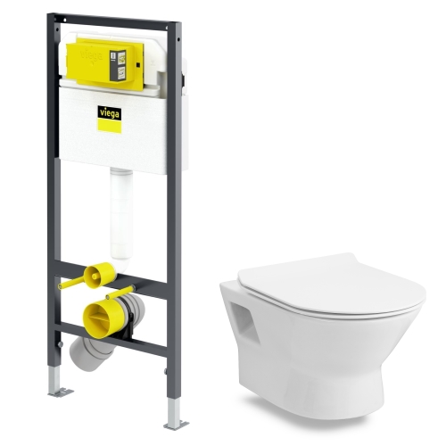Комплект: підвісний унітаз Volle Fiesta Rimless без обідка (13-77-034) з тонким сидінням + інсталяція Viega Prevista Dry 771973 (3 в 1), клавіша 773717