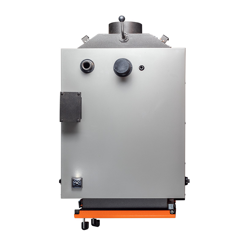 На задній стінці корпусу котла закріплений димохід із шибером. По обидва боки димоходу розміщено ревізії для чищення.