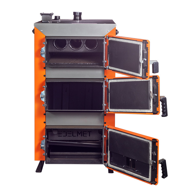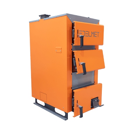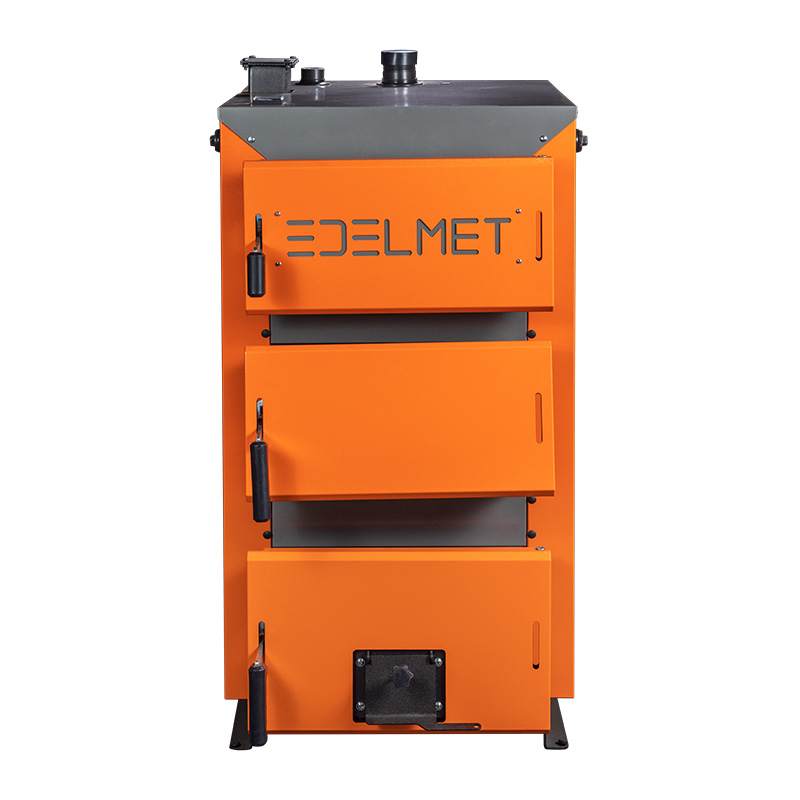 Котел моделі Edelmet виконаний у формі паралелепіпеда з подвійними стінками. Основою котла є сталевий теплообмінник прямокутної форми, що складається з топки та верхнього трубного теплообмінника. Водяний об’єм котла (водяна сорочка) утворюється між зовнішніми стінками теплообмінника, топкою та газоходами. У нижній частині теплообмінника розташована камера збору золи, яка обмежується з боків стінками теплообмінника, зверху і колосниковими іратами, знизу і піддоном. Зовні теплообмінник покритий шаром теплоізолюючого матеріалу та декоративною обшивкою, яка надає казану естетичного вигляду.