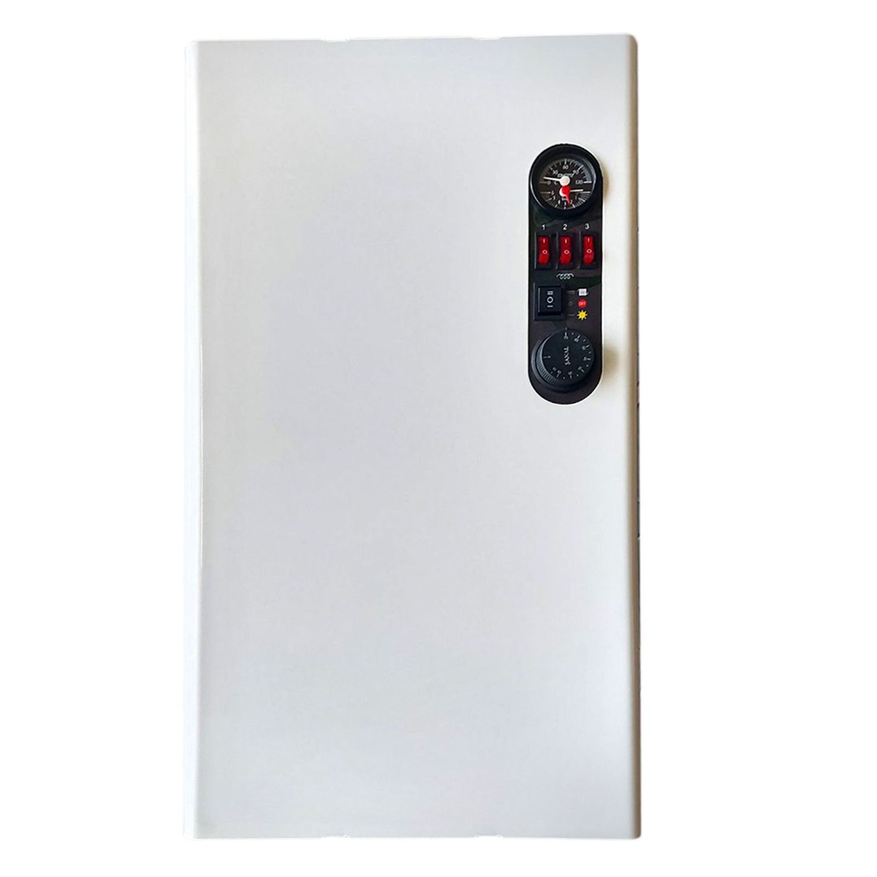 Двоконтурний котел для опалення та гарячого водопостачання з автоматикою, що контролює температуру (30-80°C), підтримкою зовнішнього датчика, двома ступенями захисту від перегріву, підключення 3ф, 380 В, 3 ступені нагріву (3х5,0 кВт), повна потужність 15 кВт (безшумна робота), вбудований насос, група безпеки, розширювальний бак, ККД – 99%, максимальна температура 80°C, протока води до 8.5 л/хв (при дельті Т 25°C), під’єднання різьблення: контур опалення 3/4, контур ГВП 1/2, розміри: 700*375*220, вага до 26 кг, високоякісний ТЕН із нержавіючої сталі.