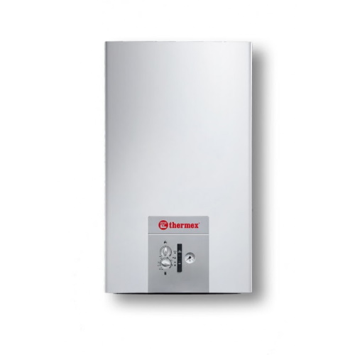 Котел газовий Thermex EuroStyle F24 – це настінний газовий котел потужністю 24 кВт для опалення та ГВП із закритою камерою згоряння (турбований). Газовий котел працює на природному магістральному газі або зрідженому з балона (при заміні форсунок), що економічніше за твердопаливні або електричні котли. Котел Thermex розрахований на тривалу інтенсивну експлуатацію, тому всі комплектуючі вирізняються високою якістю та надійністю. Відрізняється невеликими габаритами, завдяки чому розмістити можна в будь-якому приміщенні і на місці стандартної шафки. Газовий котел Thermex повністю безпечний, оснащений закритими камерами згоряння, завдяки чому встановити котел можна навіть у житловому приміщенні – необхідне повітря для горіння та відведення диму проходять через димохід, тому котел не впливає на вентиляцію кімнати. При цьому оснащений високоточними датчиками температури, тиску та наявності тяги. За будь-якого відхилення від норми подача газу припиняється.