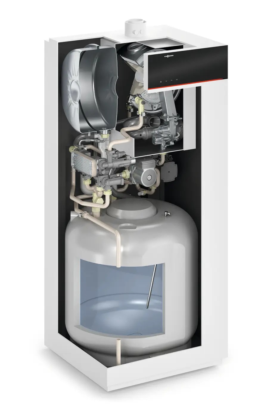 Vitodens 222-F і це інтелектуальний енергетичний центр, який відповідає найвищим стандартам комфортного теплопостачання. Завдяки завантажувальному баку з нержавіючої сталі об’ємом 100 літрів або баку ГВП об’ємом 130 літрів з внутрішнім непрямим теплообмінником він пропонує максимальну зручність ГВП в одному компактному приладі.