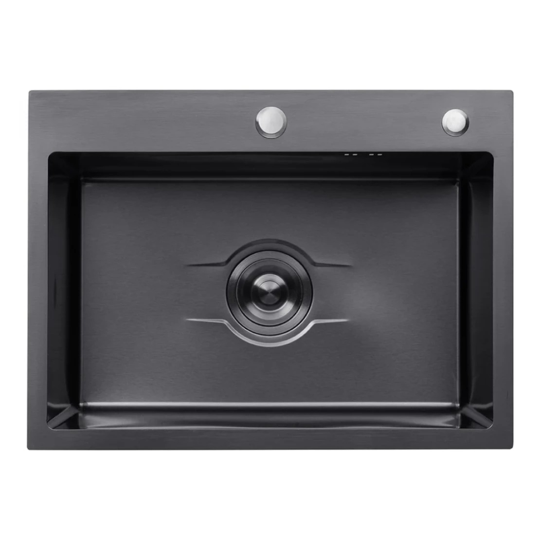 Прямокутна кухонна мийка з нержавіючої сталі Kroner Derby KRP PVD – 6050HM CV027242 розміром 60х50 см має чорну гладку PVD поверхню. Мийка може бути встановлена як в один рівень зі стільницею, так і з невеликим виступом тонкого бортика. Стильна продумана форма з великою глибиною чаші 20 см робить цю мийку оптимальною для комфортного миття габаритного посуду, обробки продуктів. На спеціальній поличці передбачено два отвори: для змішувача і дозатора прихованого монтажу. Мийка поставляється з комплектом злив-переливу, що робить можливим швидкий і якісний монтаж.