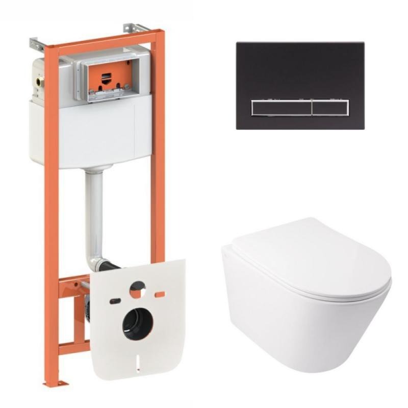 Комплект: Qtap Swan Ultra Quiet унітаз підвісний QT16335179W + Nest комплект інсталяції 4в1 (лінійна клавіша Black mat) QT0133M425 + M08V1091MB.