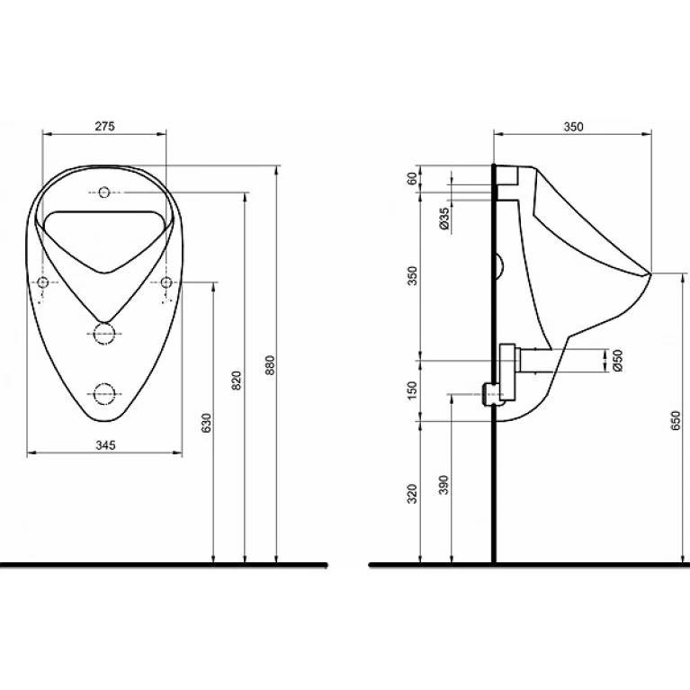 • для комплектації з ситечком, сифоном для пісуара, автоматичним клапаном з радарним зливом та термічною системою змиву. Рекомендується комплектувати сифоном Geberit 152.950.11.1.