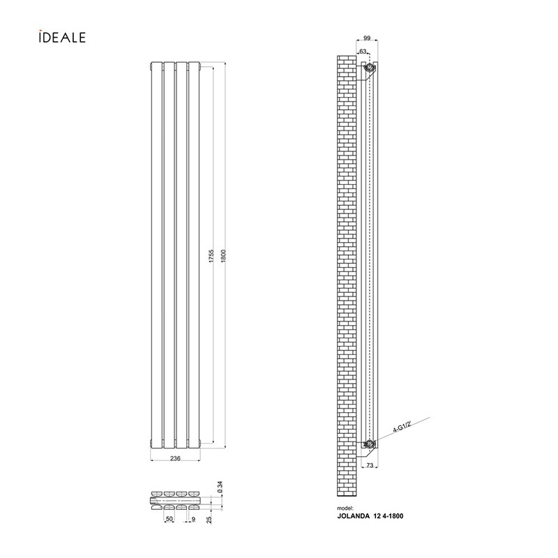 Будьте першим, хто залишив відгук “Радіатор дизайнерський IDEALE JOLANDA 12 4/1800/236 антрацит (IDEALE16903)”“