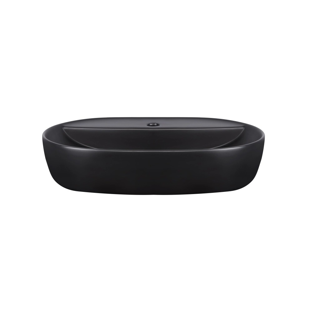 Раковина-чаша Qtap Scorpio 610x400x120 Matt black QT142203MBMB – популярний та затребуваний варіант раковин у сучасних ванних кімнатах. Виріб встановлюється на стільницю або тумбу, тим не займає місце всередині них, а всі підводи приховані. Раковина обладнана отвором під змішувач, виготовлена ііз високоякісної кераміки чорного кольору з приємним матовим покриттям. Сифон для раковини набувається окремо.