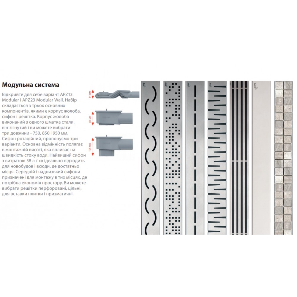 - Для водовідвідних жолобів ALCA Modular: APZ13, APZ23