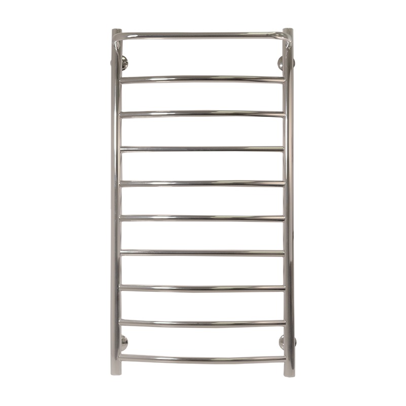 Сушка для рушників виготовлена з дзеркально відполірованої нержавіючої труби з товщиною стінки 2 мм, діаметром 30 мм і П-подібних перекладин діаметром 18 мм, завдяки цьому її можна підключати без фітингів і таким способом підключення стало значно простіше, дешевше і надійніше. .