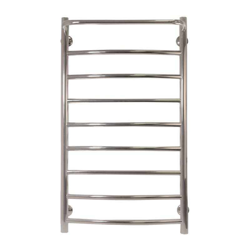 Сушка для рушників виготовлена з дзеркально відполірованої нержавіючої труби з товщиною стінки 2 мм, діаметром 30 мм і П-подібних перекладин діаметром 18 мм, завдяки цьому її можна підключати без фітингів і таким способом підключення стало значно простіше, дешевше і надійніше. .