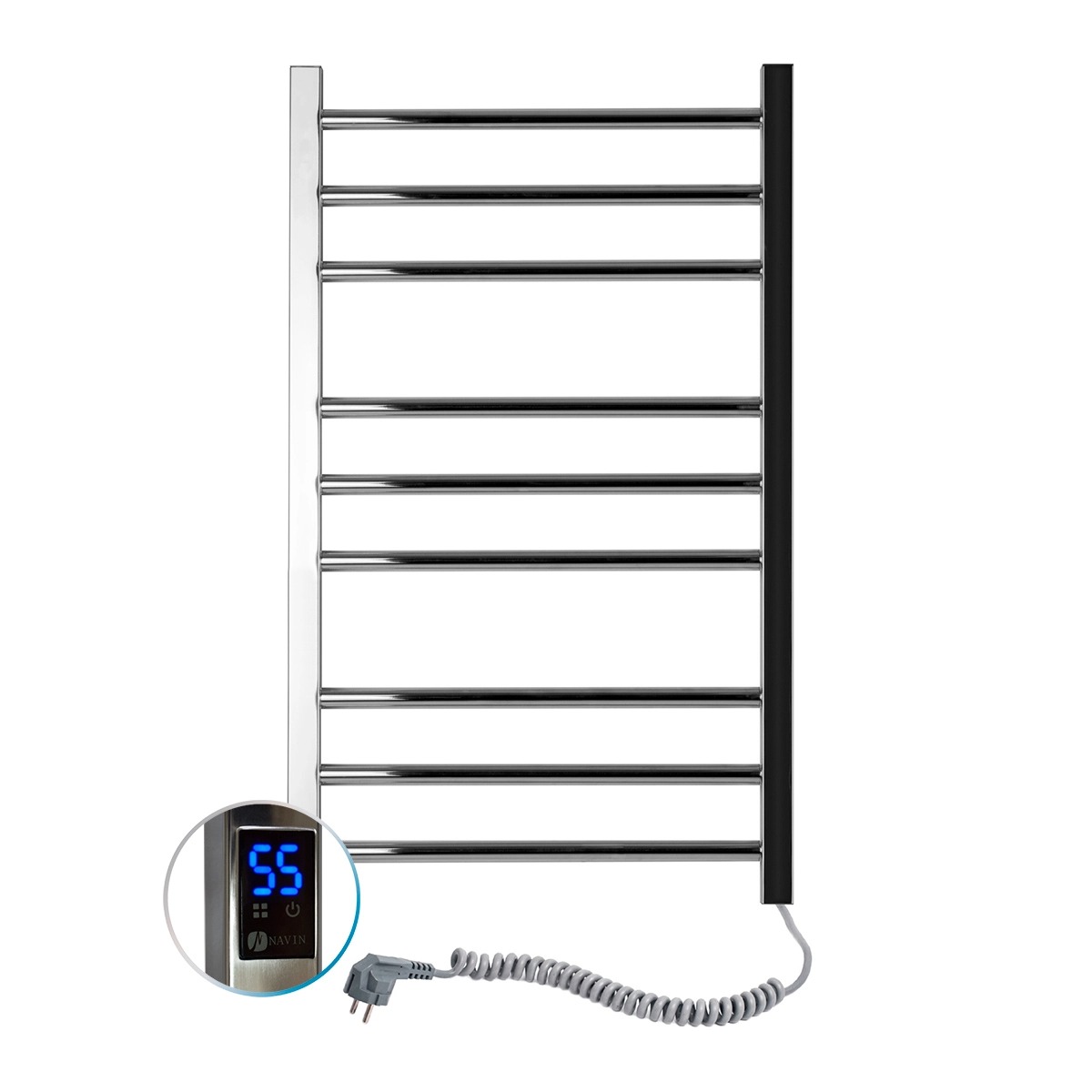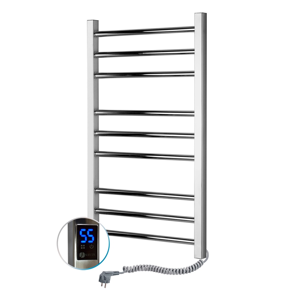 Сушка для рушників Класик Квадро 500х800 Sensor (розташування шнура з вилкою і праворуч) від українського виробника NAVIN виготовлений з харчової нержавіючої сталі, яка стійка до подряпин і механічних пошкоджень, а також має високу антикорозійну стійкість. Товщина стінки перемичок сушарки становить 1,5 мм, а бічних стійок (колекторів) і 2 мм. Сушка для рушників має дзеркальну поліровану поверхню, отриману шляхом високоточного електроплазмового полірування.