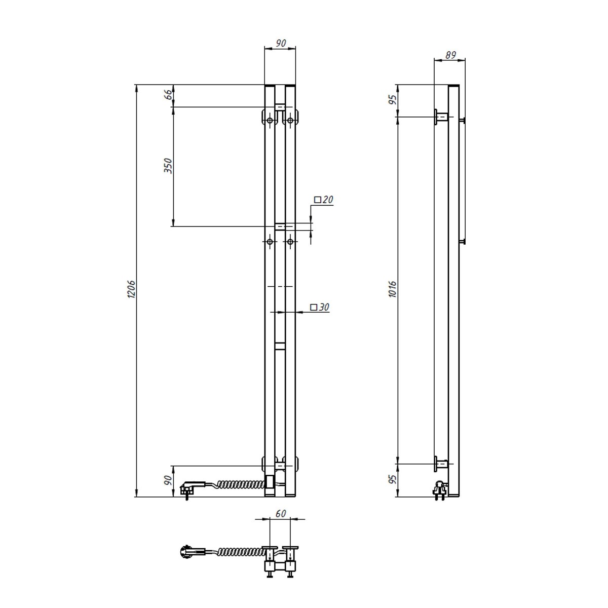 Електрична сушка для рушників Силует Квадро 90х1200 Sensor, колір і білий, від українського виробника NAVIN, виготовлений з вуглецевої сталі, яка відрізняється високою якістю і міцністю. Модель має порошкове покриття. Товщина стінки стійок і перемичок рушникосушарки становить 1,5 мм.
