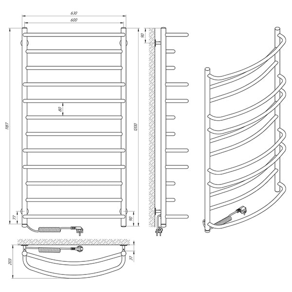 Сушка для рушників – 1 шт, кріплення (шуруп оцинкований з дюбелем, п’ятак, втулка, штифт, стійка) – 4 шт, ключ шестигранний – 1 шт, упаковка (короб картонний, чохол поліетиленовий, чохол поліетиленовий для кріплення, коробочка для кріплень) , паспорт і 1 шт.