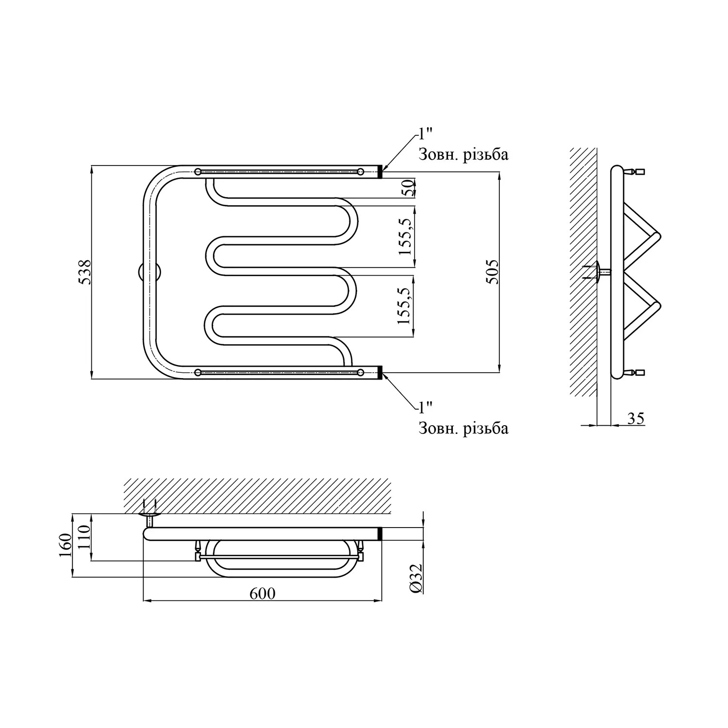 Сушка для рушників водяна Kroner Фокстрот ФС03 530х600 (CV028927)